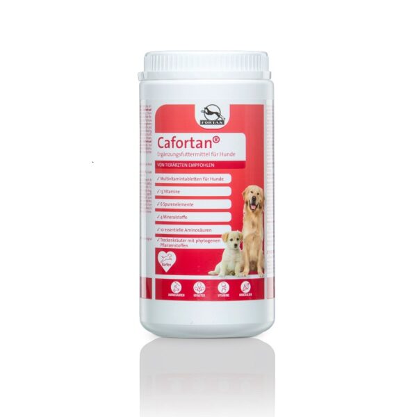 Fortan Cafortan kombinuje širok spektar visoko efikasnih sastojaka, posebno uravnoteženih kako bi udovoljili zahtevima pasa. Pruža solidnu osnovu za zdravlje vašeg psa i sadrži neophodne vitamine, minerale, elemente u tragovima i aminokiseline, koji se nalaze u prirodnim izvorima kao što su visokokvalitetni, sušeni kvasac specijalnog kvaliteta, peptoni, biljke i hemoglobin.