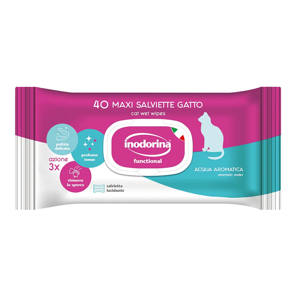 INODORINA Salviette Functional Cats Aqua Aromatica, vlažne maramice za mačke – 40 komada