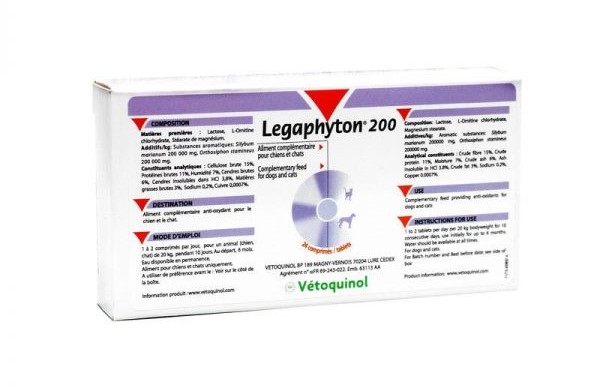 Legaphyton 200 mg = 1 do 2 tablete / 20 kg telesne mase – 2 x dnevno