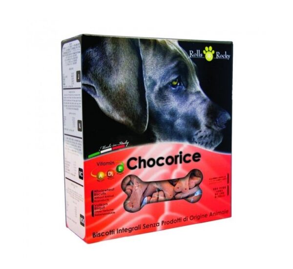 Rolls Rocky Chocorice je dopunska hrana za pse – biskvit bez dodataka životinjskog porekla.