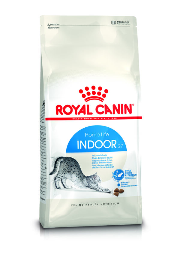 Feline Health Nutrition Indoor je balansirana formula koja smanjuje neprijatan miris stolice redukcijom hidrogen-sulfida Zahvaljujući umerenom unosu kalorija prilagođenom manjem nivou fizičke aktivnosti mačaka u zatvorenom prostoru, L-karnitinu mobiliše masne depoe, a hrana obezbeđuje održavanje idealne telesne težine. Kombinacija nefermentisanih vlakana i repine pulpe, stimuliše transport u crevima i pomaže izbacivanju kuglica dlake.