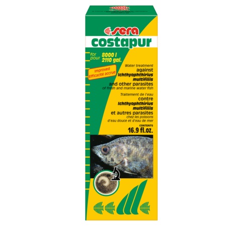 Sera Costapur je lek protiv  belih mrlja (Ichthyophthirius) i drugih kožnih parazita koji napadaju telo ribica (Costia, Chilodonella i Trichodina).