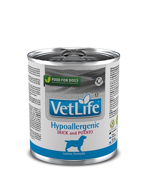 Farmina Vet Life Hypoallergenic Duck & Potato ( konzerva ) je kompletna dijetetska hrana za pse, namenjena smanjenju nepodnošenja pojedinih sastojaka i hranljivih materija. Redukcija neželjenih reakcija na sastojke hrane.