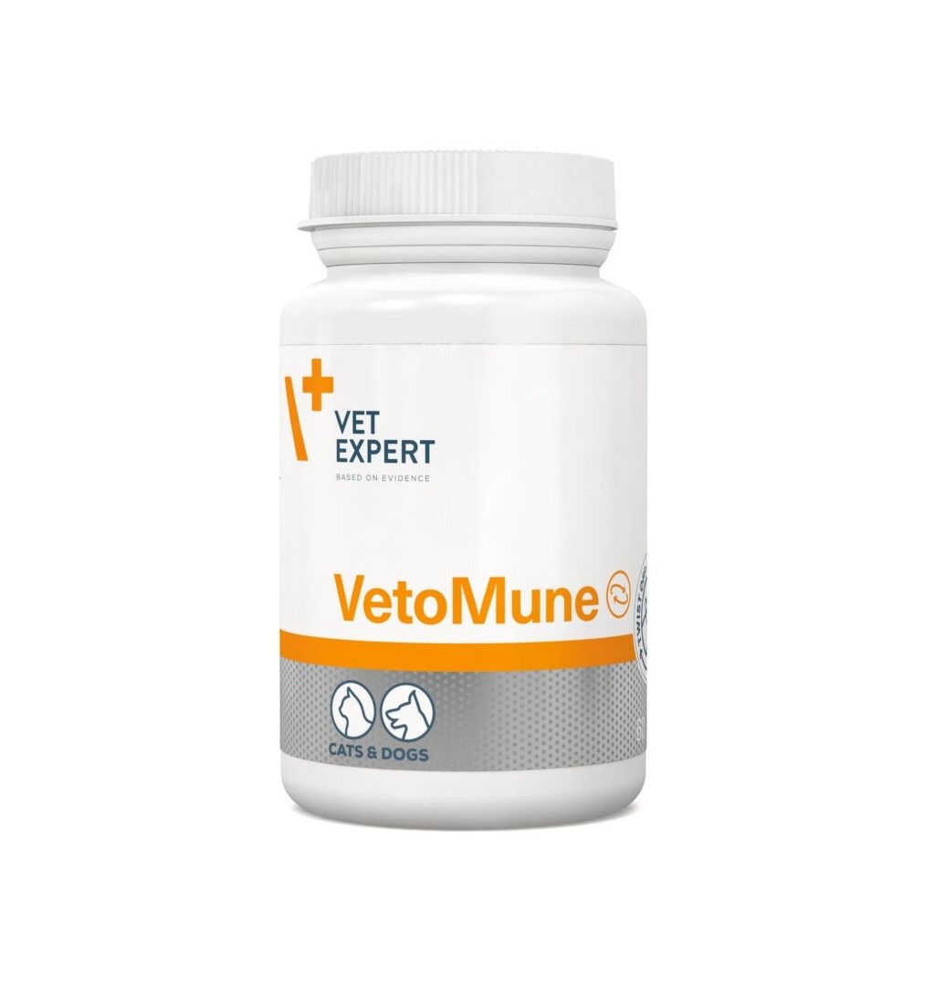 VetoMune je dodatak hrani namenjen psima i mačkama za jačanje ćelijskog i humoralnog nespečifičnog imuniteta koji je važan za borbu protiv virusa, bakterija i malignih ćelija. VetoMune se može davati psima i mačkama koji su pod rizikom ili već boluju od bakterijskih ili virusnih infekcija, kod vrlo mladih ili starih jedinki, kod pasa obolelih od raka, kod gravidnih životinja koje će preneti imunitet na potomke.