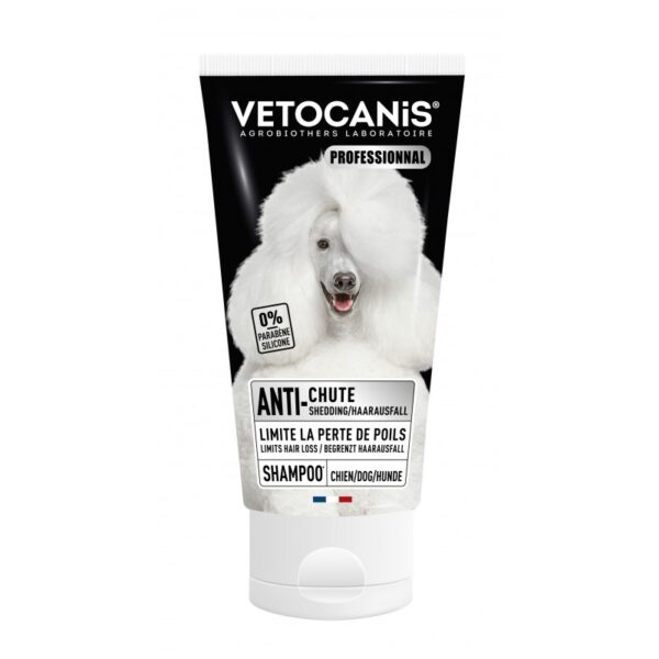 VETOCANIS Anti-Shedding profesionalni šampon protiv linjanja pasa ograničava gubitak dlake vašeg ljubimca. Formulisan bez silikona ili parabena, ovaj šampon je posebno dizajniran za kućne ljubimce fine dlake. Kopriva ograničava linjanje dlake. Ginseng svojim stimulativnim svojstvima deluje na koren dlake da bi obnovio vitalnost, snagu i snagu. Pogodno za sve vrste krzna i sve dužine dlake. 300 ml format. Svi naši šamponi su proizvedeni u Francuskoj, u Alzasu, pod veterinarskim nadzorom.