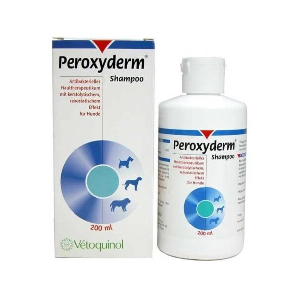 Šampon je namenjen za upotrebu kod pasa s gnojnim lezijama na koži, masnom seborejom, inficiranim zadebljanjima kože (kalusa). Peroxyderm® pomaže kod demodikoze pasa zahvaljujući efektu čišćenja folikula dlake.
