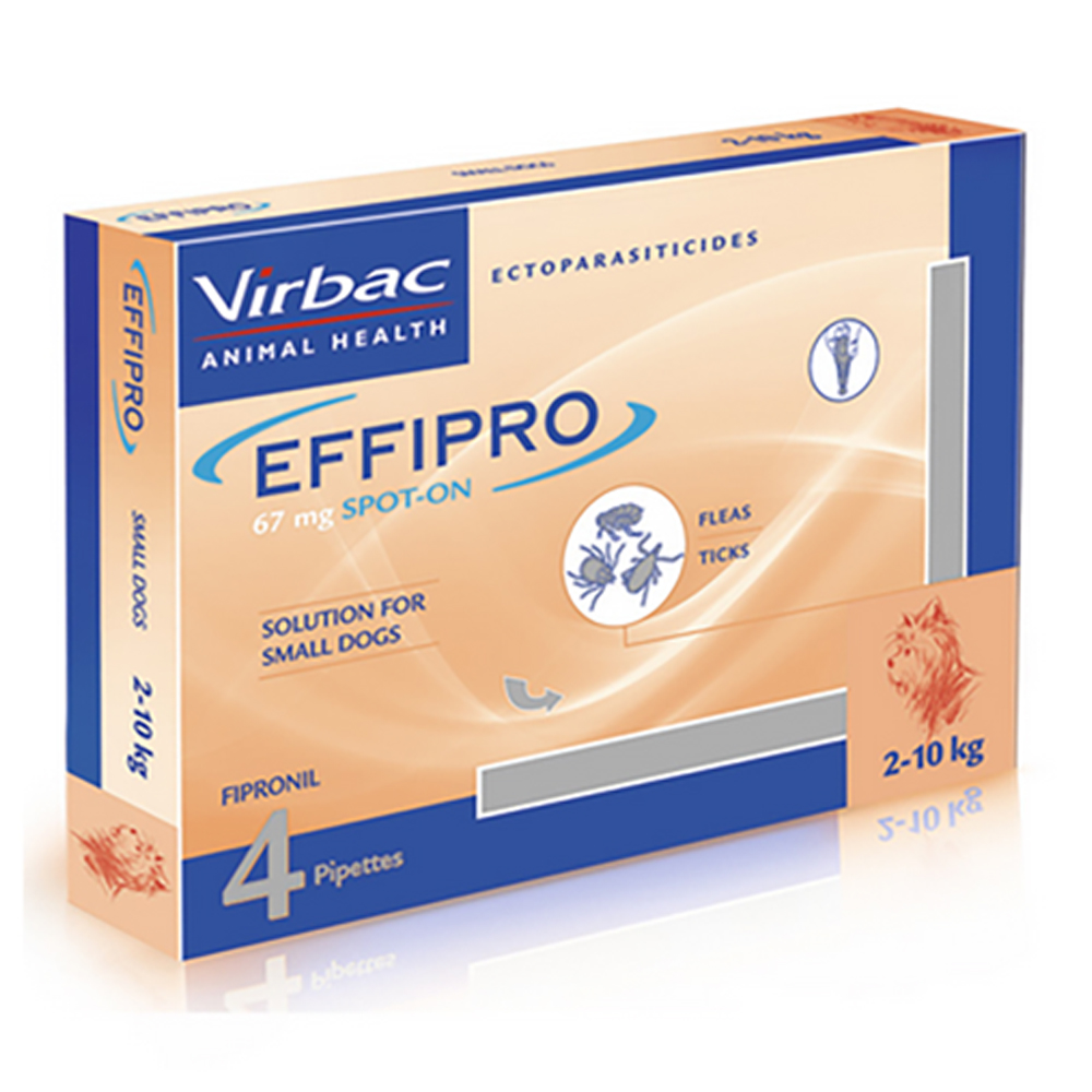 Virbac EFFIPRO za tretman i prevenciju infestacije buvama (Ctenocephalides spp.) kod pasa i mačaka. Za tretman i prevenciju infestacije krpeljima (Ixodes ricinus, Rhipicephalus sanguineus) kod pasa i mačaka.
